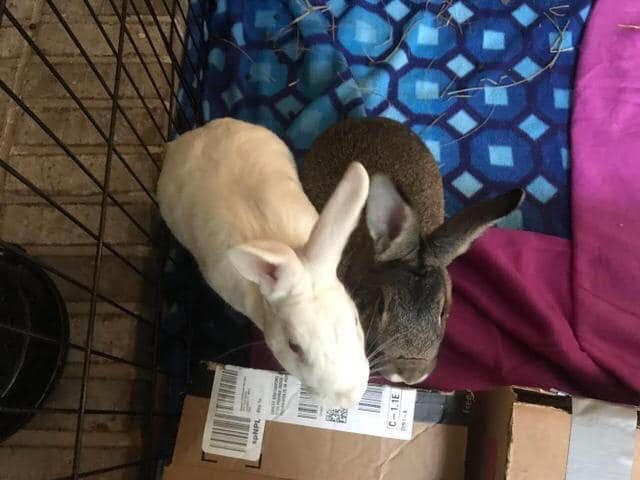 Meet Fiver and Hazel, a bonded pair of neutered bunnies available for adoption through EARPS! These sweet boys have been overlooked for far too long … over two and a half years in the rescue! You could not find two sweeter, more loving rabbits, their only fault being that they are plain-looking. They’re wonderful around all people, including children, and are also great with dogs and cats. Seriously, won’t someone give these sweet boys a chance and take them home to join the family? If you’re interested in adopting Fiver and Hazel and giving them a forever home, please fill out an adoption application on the EARPS website. Their adoption fee is $80 for the pair.