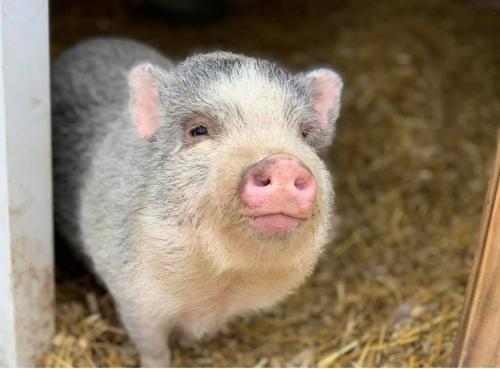 Meet Goliath, a smart and sweet neutered nine month-old pot-bellied pig available for adoption through A Critter’s Chance Rescue! This adorable boy was born in May of 2018, the biggest of his litter, and although he can be slightly skittish when meeting new people, he warms up quickly and loves belly rubs! Like most pigs, he’s super smart (he’s already mastered the command “sit”) and enjoys the company of people! Pot-bellied pigs are similar to dogs in the sense that they can be house-trained, leash-trained and can learn tricks, but they’re also very stubborn and sensitive. The average lifespan of a pot-bellied pig is anywhere from 12 to 20 years and if you put in the time and love with your little oinker, you’ll have the undying love and loyalty of your pig. If you’re interested in giving Goliath his forever home, please contact Kelly Thomas with A Critter’s Chance Rescue in Plainfield, either by phone [(765) 430-5610] or email (samboni95@gmail.com). Goliath’s adoption fee is $150 and I’ve included the link to the pig-specific adoption application.