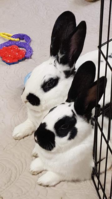 Meet Magnum P.I. and Higgins, an adorable bonded pair of English Spot rabbits available for adoption through EARPS! These two were brought to the rescue almost two years ago from an owner surrender where they had lived in cramped quarters with all their babies. These two are now neutered and spayed (respectively) and deserve to find a forever home where they can be loved and love each other. Magnum is the husbunny and is very protective of Higgins, although they must be fed separately so he doesn’t protect her from her own food! Is there someone out there who wants to take this couple home and watch them grow old together? If you’re interested in adopting Magnum P.I. and Higgins, please fill out an adoption application on the EARPS website. The adoption fee is $80 for the pair and they MUST be adopted together!