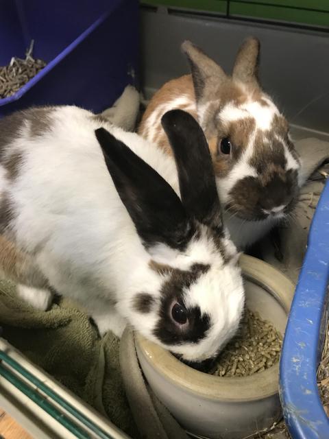Meet Bruiser and Rocky, a pair of bonded male rabbits available for adoption through EARPS! These two were brought to the rescue after Magnum P.I. and Higgins were brought in nearly two years ago, rescued from tight quarters outdoors in the middle of a stifling hot summer. Is there someone out there who wants to take these boys home and watch their bromance blossom into old age? If you’re interested in adopting Bruiser and Rockey, please fill out an adoption application on the EARPS website. The adoption fee is $80 for the pair and they MUST be adopted together!