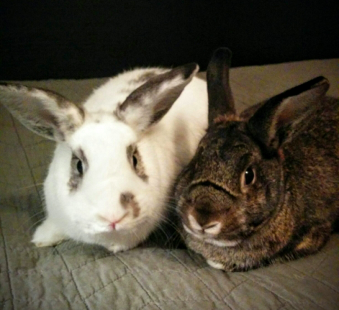 Meet Mancala and Jenga, a bonded pair of four and a half year-old sisters available for adoption at the Indiana House Rabbit Society! Mancala is a mixed breed with a brown racing stripe down her back (she looked exactly like her mama!) and Jenga is a brown agouti, both weighing between five and six pounds. Although both buns can be a bit shy, Mancala enjoys being pet more than her sister and is quite spirited. They’ll do the Bunny 500 with each other every morning, Mancala causing a ruckus and showing off her fun personality! Are you the loving and patient home these girls deserve? If you want these sweet sisters to be a part of your forever family, please fill out the adoption questionnaire and check the link on adopting a rabbit from the Indiana House Rabbit Society. The adoption fee for this pair is $110 (which helps cover their spay surgeries) and they’ll come home with a small bag of hay, a small bag of pellets and their veterinary histories.