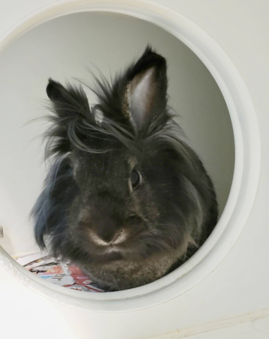 Meet Farrah, a fabulously coiffed four year-old Lionhead available for adoption through the Indiana House Rabbit Society! Farrah was surrendered when her owner moved (I’m giving the benefit of the doubt and assuming it was an international move that didn’t allow rabbits, ahem), and as you can assume, she got her name because of her amazing hair! She’ll need an owner fluent in bunny, someone who knows to approach her slowly and with caution, because if startled she might lunge. Luckily, as soon as you touch her she absolutely melts and you could pet and snuggle her for hours … she’s such a cuddle bun! Are you a bunny pro and super savvy when it comes to working with cautious rabbits? Do you think you can handle having a bun whose hair just might look better than yours? If you want Farrah to be a part of your forever family, please fill out the adoption questionnaire and check the link on adopting a rabbit from the Indiana House Rabbit Society. Farrah’s adoption fee is $65 (which helps cover her spay surgery) and she’ll come home with a small bag of hay, a small bag of pellets and her veterinary history.