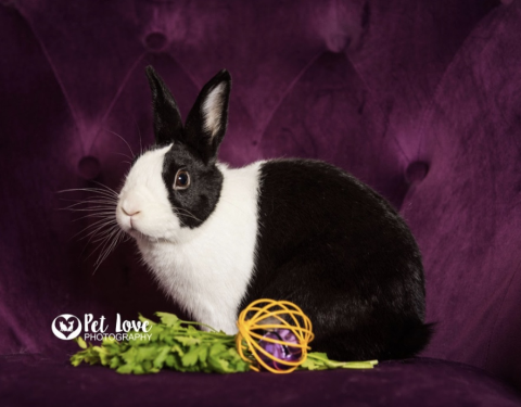 Meet Bernie, a hilarious two year-old Dutch rabbit available for adoption through the Indiana House Rabbit Society! Bernie has tons of energy for tons of Bunny 500 laps and he will definitely need time and space to unload all of those zoomies! Have you ever seen a bunny do a binky? Bernie will keep you thoroughly entertained with binkies, zoomies, Bunny 500s … you name it! But once he’s worn himself out, he really enjoys people and will settle down to be pet and handled … he’s an absolute sweetheart! Are you ready for some comic relief in your life in the form of a sweet little black and white furball? If you want Bernie to be a part of your forever family, please fill out the adoption questionnaire and check the link on adopting a rabbit from the Indiana House Rabbit Society. Bernie’s adoption fee is $65 (which helps cover his neuter surgery) and he’ll come home with a small bag of hay, a small bag of pellets and his veterinary history.