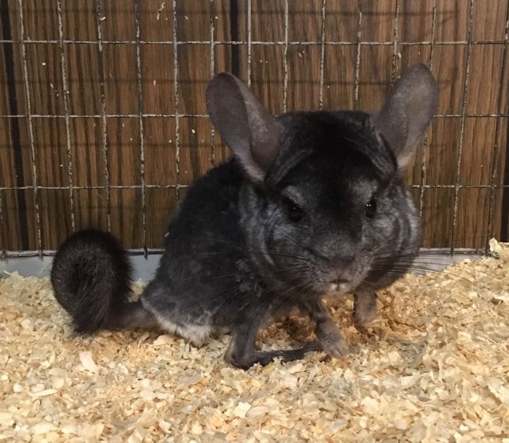 Meet Molly, a curious seven year-old ebony chinchilla available for adoption through NWI Chinchilla Rescue! Molly was a class pet many years ago and when the teacher moved to a different district, this lovely lady was put up for sale at the school’s sidewalk sale. She was adopted by a very loving family, but as their children grew older there was less and less time to spend with Molly, so she’s looking for her forever home now! Molly is a very curious chinchilla and although she doesn’t care for the feeling of being picked up (it would make me nervous, too!), once she’s in your hands she enjoys the affection and settles right down like a little lovebug! She’s a habitual fur chewer, so although she doesn’t look as fluffy as most chinchillas it does not negatively affect her health. She currently lives alone, but the rescue is more than willing to test out if she’ll bond with another chinchilla if you’re interested! Molly will come with some food to start you out (2 pounds of Tradition pellets), a goodie bag of chews/treats, and a printed out version of the care packet. Chinchillas need weekly dust baths, so you will definitely need to make sure you have special chinchilla dust on hand to keep her fur and skin healthy. Regardless of past chinchilla experience, all potential homes will be asked to read their chinchilla care packet and fill out the adoption application/chinchilla questionnaire. No chinchilla will go to a new home without an adoption application being filled out – NO EXCEPTIONS. Molly’s adoption fee is $100 and you must come to her for the adoption, she cannot be shipped (NWI Chinchillas is in Hammond, Indiana).