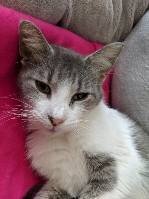 – good with dogs and other cats, but needs to be in a home without small children (10 or older, at least).