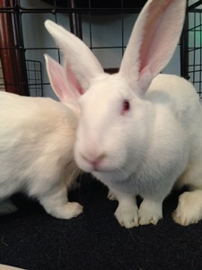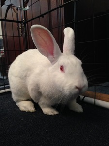 Meet Lillian, Lucy and Lyla, a trio of almost-five year-old New Zealand White bunnies available for adoption through Indiana House Rabbit Society! These three are super lucky sisters … their mom was caught in a park and these beauties were born three weeks later! As you can tell from the pictures these girls love each other and love to snuggle … isn’t it adorable? They can be a bit reserved around people, but being bunnies and being nosy they quickly come over to visitors to check them out, bonus points if you bring them snacks! Lyla tends to be less snuggly than her sisters (and her dewlap is very prominent, which helps you tell her apart from her sisters!), but they’re very devoted to each other and would be best if adopted together. If you have room in your heart and home for this gorgeous trio of sisters, please fill out the adoption questionnaire and check the link on adopting a rabbit from the Indiana House Rabbit Society. The adoption fee for the trio is $150 (which helps cover their spay surgeries) and they’ll come home with a small bag of hay, a small bag of pellets and their veterinary history.