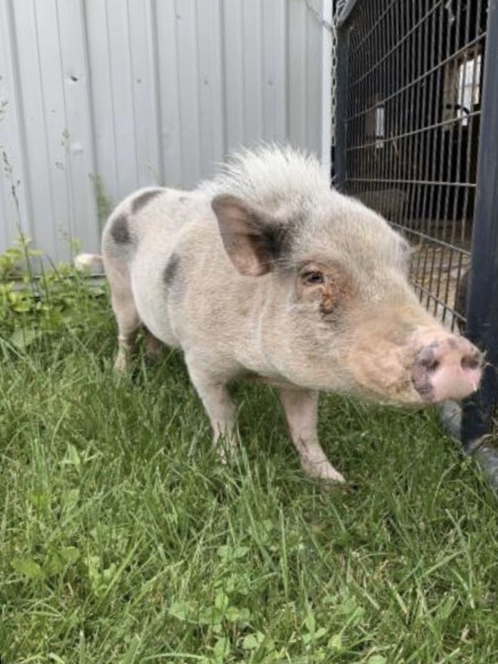– a delicate pig who, after years of abuse and neglect, has been known to bite on occasion and needs an experienced pig owner.