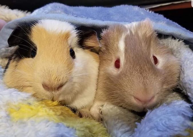 Meet Neo and Boomer, a bonded pair of male guinea pigs available for adoption through