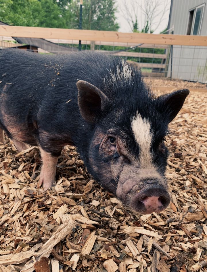 Meet Lollipop and Tootsie Roll, a bonded pair of seven month-old pot-bellied pigs available for adoption at Oinking Acres Farm Rescue & Sanctuary! This brother/sister duo was brought to the rescue with some slight skin issues (which are currently being treated) and are very bonded to one another, so they MUST be adopted together! Both love snacking on apple slices and can tend to be a bit shy at first, but they warm up quickly and Lollipop loves to lay down for belly rubs while Tootsie Roll prefers being given treats! Pot-bellied pigs are similar to dogs in the sense that they can be house-trained, leash-trained and can learn tricks, but they’re also very stubborn and sensitive. The average lifespan of a pot-bellied pig is anywhere from 12 to 20 years and if you put in the time and love with your little oinker, you’ll have the undying love and loyalty of your pig. Lollipop and Tootsie Roll have been spayed and neutered, respectively, and they are more than ready to find their forever home. If you’re interested in a snorting good time and would like to adopt Lollipop and Tootsie Roll, please fill out an adoption application online. Their adoption fee is $275, though if you’re out of state it costs an additional $100 per pig and your pigs must have health certificates (Oinking Acres takes their pigs to Purdue Large Animal Hospital to have this done and receive the document).