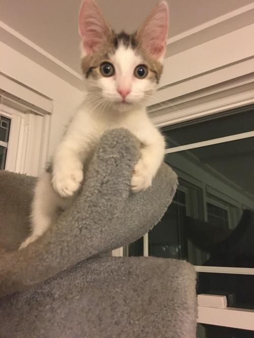 Meet Little Caesar, a daring four month-old kitten available for adoption through the Hancock County Humane Society! Little Caesar (or Little C, as he’s fondly known by his foster mom) is a very daring and playful boy who loves to have fun and climb high places! He’s a darling boy who gets along with everyone, so don’t let the Ides pass you by, give this sweet kitten his forever home today! Shelter hours are by appointment only on Saturdays and the shelter is closed on holidays. Two shelter visits are also required before the adoption can be completed and adoption fees vary based on age of cat, age of adopter, etc., so please click the link above for more information.