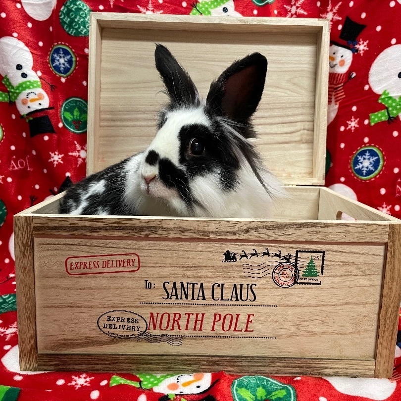Meet Dolly, a beautiful five year-old black and white Lionhead rabbit mix available for adoption at IndyCLAW Rescue! Dolly was part of an unexpected litter of eight bunnies that arrived after their mom was rescued from a park in Frankfort, Indiana. Dolly quickly became known as the diva of the group, so she was separated from her siblings at a young age due to her being a bit of a show-stealer. This pretty girl is sweet and sassy and has the most adorable muttonchops … isn’t she beautiful?! This bunny is quite the catch and would make a great first rabbit for some lucky family, so hop on over to IndyCLAW and fall in love with this sweet honey bun! Dolly’s adoption fee is $80, but if you want double the fun, adopt two and it’s $100 for the pair! For more information on Dolly, please visit IndyCLAW‘s website or email adopt@indyclaw.org … visits are by appointment only.