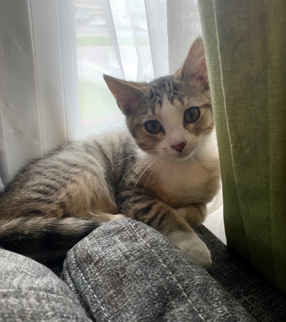 Meet Bridget, a petite and social domestic medium hair kitten available for adoption through Mended Hearts Rescue! Bridget is a curious girl who loves to explore and while she might get spooked by noises, she’s quick to come back and investigate! She loves to play, but her most favorite thing to do is be cuddled by her people … she could sit in your lap forever as long as you don’t stop petting her! She’s such a tiny girl, don’t you have room in your heart and home for this sweetheart? If you’re interested in meeting Bridget, please contact Mended Hearts Rescue on their website at http://www.mhrindy.org/adoption-inquiry. Bridget’s adoption fee is $65.