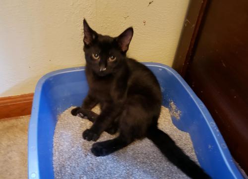 – a sweet and playful boy who definitely prefers traditional clay litter over the scoopable kind (he rolls in the non-clay type)!