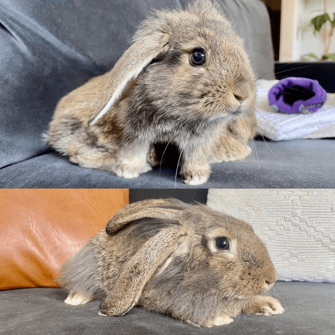 – an energetic and affectionate girl who loves to run and be petted by her humans (she loves pets more than treats!), but she will need a bunny-proofed area because she’s still young and mischievous.