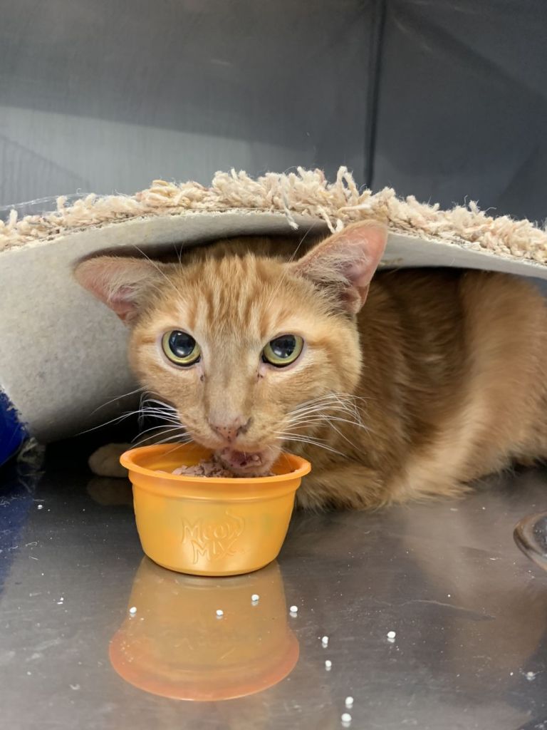 – an friendly girl who comes when she’s called and who adores eating good food (the soft food is her jam) and curling up under her carpet square.