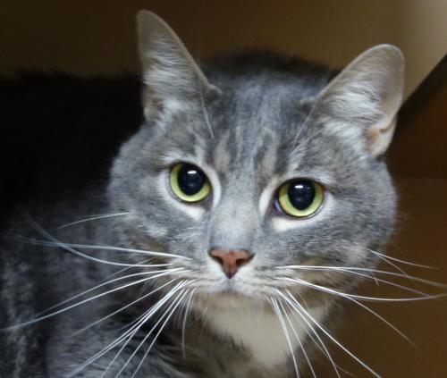 Meet Ella, a beautiful four-and-a-half year-old blue/gray tabby cat available for adoption through the Hancock County Humane Society! Ella was surrendered to the shelter after her family moved and were unable to take her with them, so she’s more than ready to find her forever home! This gorgeous girl is so incredibly sweet, loves affection from her people and enjoys playing with toys. No information was given as to how Ella does with children and other animals, but she’s an absolute doll with adults. How can you resist those big, expressive eyes and sweet face? Shelter hours are by appointment only on Saturdays and the shelter is closed on holidays. Two shelter visits are also required before the adoption can be completed and adoption fees vary based on age of cat, age of adopter, etc., so please click the link above for more information.