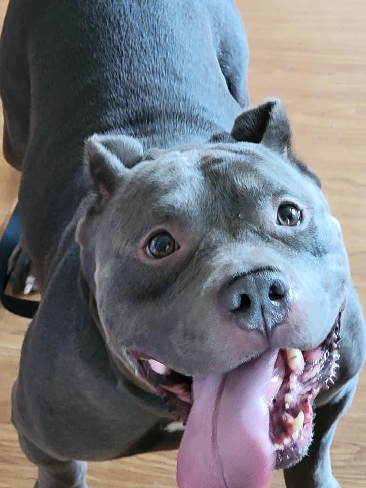 – a friendly boy who needs an experienced Pit Bull owner who can give him structure and training (and a fence is required for adoption).
