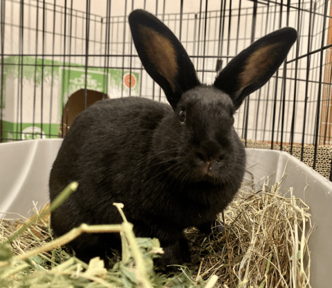 Meet Burdie, a binky-loving one year-old lop mix available for adoption through the Indiana House Rabbit Society! This sweet girl came to foster care at only a few weeks old and she absolutely adores people! Burdie is a very athletic bun and loves to do tons of binkies and zoomies and is also quite the talented climber (you will want a tall pen or a pen-topper for this adventurous girl). Burdie is a very well-behaved girl and with her good manners and high energy she could potentially be a good free-roam candidate. Currently fostered in a busy home with several different species of fur babies, she loves them all and adds to the fun! She might enjoy climbing, but don’t worry about this little Burdie flying away from your forever home! If you want Burdie to be a part of your forever family, please fill out the adoption questionnaire and check the link on adopting a rabbit from the Indiana House Rabbit Society. Burdie’s adoption fee is $100 (which helps cover her spay surgery) and she’ll come home with a small bag of hay, a small bag of pellets and her veterinary history.