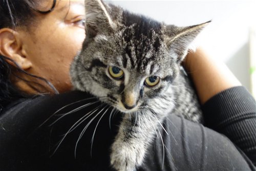 – a bit shy at first, but warms up with canned cat food and is very playful once she’s comfortable.
