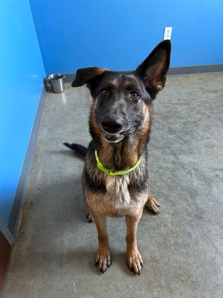 – a happy-go-lucky boy with a great personality and terrible leash manners, so he would do best in a home that has German Shepherd experience.