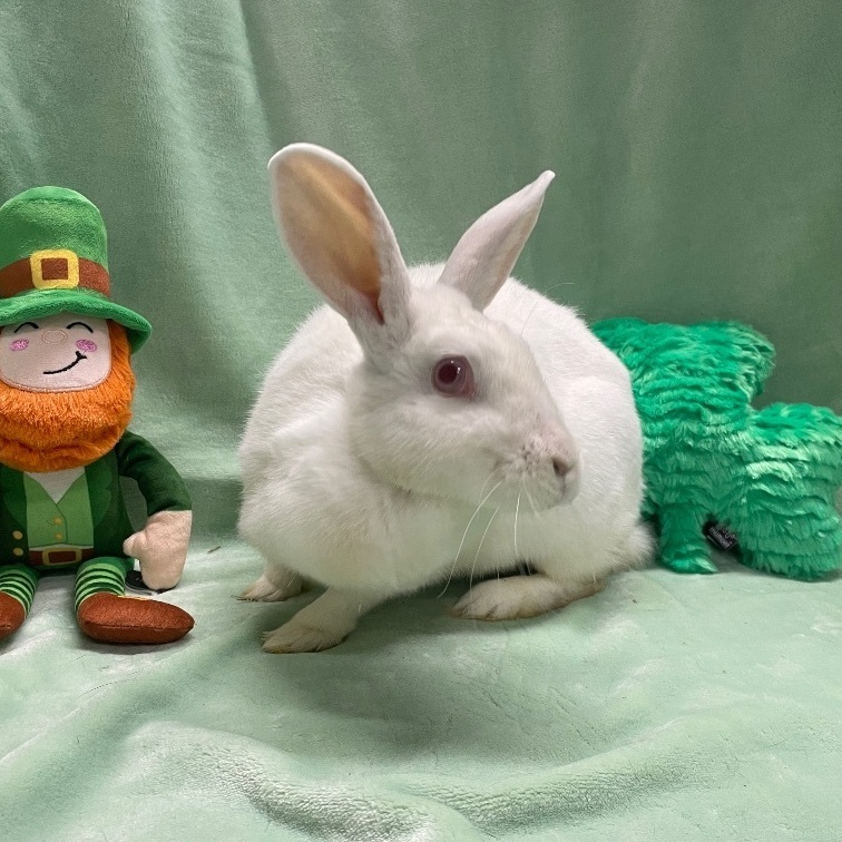 Meet Holly, a friendly New Zealand rabbit available for adoption at IndyCLAW Rescue! If you’re looking for the perfect bunny, Holly is your girl! Holly loves to be held, has excellent litter-box habits, does well with children and other animals and is as sweet as can be! Holly also enjoys exploring her surroundings, so she will need adequate space to exercise. How can you resist this perfectly sweet Bunnicula? This bunny is quite the catch and would make a great first rabbit for some lucky family, so hop on over to IndyCLAW and fall in love with this sweet honey bun! Holly’s adoption fee is $80, but if you want double the fun, adopt two and it’s $120 for the pair! For more information on Holly, please visit IndyCLAW‘s website or email adopt@indyclaw.org … visits are by appointment only!