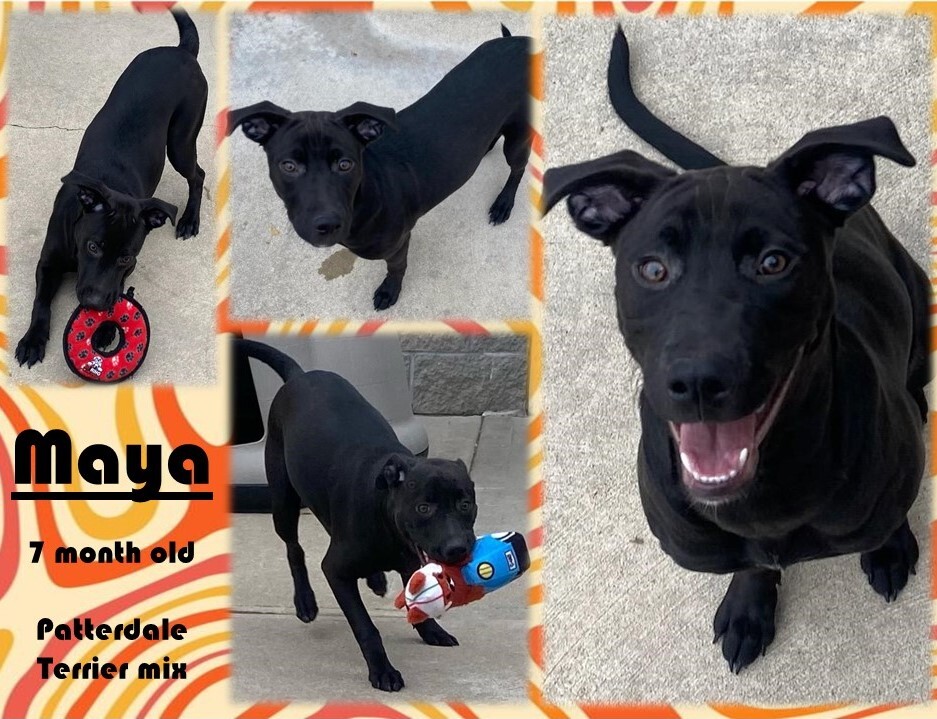 Meet Maya, a playful seven month-old Patterdale Terrier/Fell Terrier mix available at the Johnson County Animal Shelter! Maya was surrendered to the shelter because her owners were being evicted from their home, so she’s there through no fault of her own. Maya was very nervous when she first came to the shelter and it takes her time to warm up, but once she likes you she’s like Velcro and wants to be with you all the time! Maya loves to play with toys and will need an active forever family that can keep up with her puppy energy and devote the time to training (house- AND obedience). All adoptions are done with approved applicants by appointment only and once you fill out the adoption application, the shelter will contact you to set up an appointment and meet the pet. Maya’s adoption fee is $150, which covers her vaccinations, spay surgery and microchip registration.
