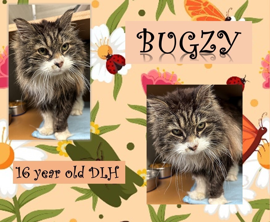 Meet Bugzy, an affectionate 16 year-old domestic longhair cat available at the Johnson County Animal Shelter! Bugzy was surrendered to the shelter due to a change in his owner’s living conditions, but it hasn’t taken the sweetness out of this distinguished senior. Bugzy adores people and can’t wait to live out his golden years being your cuddle buddy … he LOVES to be loved! He is untested with children and other animals, though Bugzy is a very laid-back boy who tends to get along with everyone (and everything!). Are you in search of a handsome couch potato to snuggle and love? All adoptions are done with approved applicants by appointment only and once you fill out the adoption application, the shelter will contact you to set up an appointment and meet the pet. Bugzy’s adoption fee is $50, which covers his vaccinations and neuter surgery.