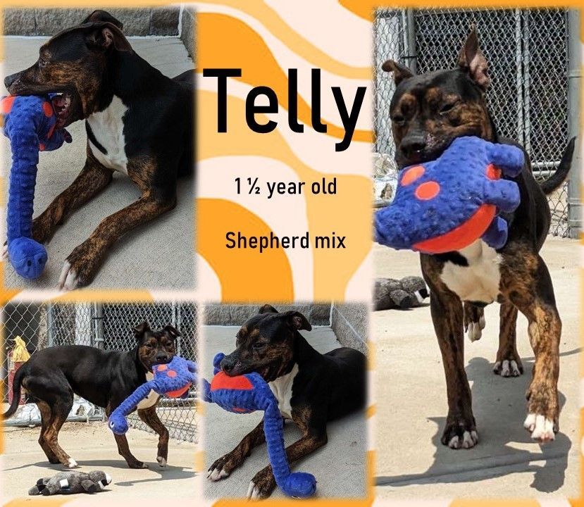 Meet Telly, a playful one-and-a-half year-old Shepherd mix available at the Johnson County Animal Shelter! Telly has been a sweet and playful boy since arriving at the shelter and he loves meeting new people! In case you can’t tell from the pictures, Telly loves his stuffed dinosaur and takes it with him everywhere, even when he’s snuggling up next to his people! Telly is untested with children and other animals, so a meet-and-greet with all members of the family (furry and human) is a must! Listen to that inner voice that’s Telly-ing you that he needs to join your forever home and come down to the shelter for a visit! All adoptions are done with approved applicants by appointment only and once you fill out the adoption application, the shelter will contact you to set up an appointment and meet the pet. Telly’s adoption fee is $150, which covers his vaccinations, neuter surgery and microchip registration.